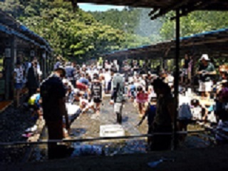 | 大勢の人での鮎のつかみ取りがにぎわう模様 | ![]() |